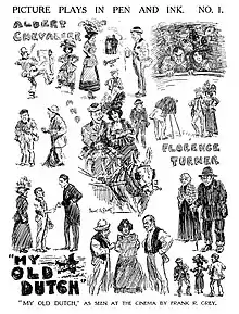 Illustrator Frank R. Grey sketched scenes from My Old Dutch for Pictures and The Picturegoer magazine (28 August 1915)
