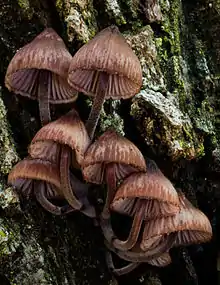 Mycena kuurkacea is a species of mushroom in the family Mycenaceae. It was first described in 2003 by Australian mycologist Cheryl A. Grgurinovic based on specimens found in New South Wales, Australia. Fruit bodies were found growing on leaf litter under Eucalyptus or on logs of Eucalyptus or Bedfordia salicina.[1]