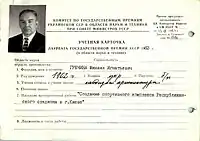 Certificate of laureate of the Ukrainian State Prize