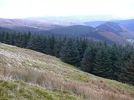 ![]() The slopes of Mynydd Gartheiniog, looking east towards the Dyfi valley | |