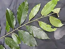 Myristica malabarica is a species of plant in the family Myristicaceae. It is endemic to the Western Ghats in southwest India. It is threatened by habitat loss according to the IUCN Red List. It can reach up to 25 m long and its bark is greenish black, smooth and sometimes reddish.