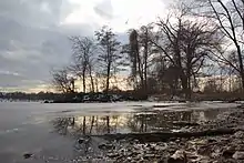 The reservation was established in 1893 by the newly formed Metropolitan Parks Commission (later renamed the Metropolitan District Commission),[5] making it one of the first official nature preserves in Massachusetts, and one of five designed by the commission in that year.[6] Of these five, three were planned as woodland river reservations: the Mystic River Reservation, Charles River Reservation, and Neponset River Reservation.[5] The Mystic River Reservation originally comprised a little over 250 acres (100 ha) of land.[6] By the early 20th century, most of the land along the Mystic River in Medford, Arlington, and Somerville had become public (i.e. state-owned) land.[3][5]