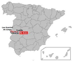 The N-521 is a Highway in western Spain. It runs from the Portugal border to the Autovía A-5.