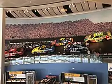 - Glory Road – A 33-degree banked ramp (matching that of Talladega Superspeedway) featuring 18 different cars and saluting 46 past and current tracks.
