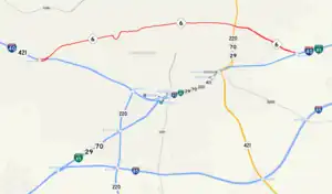 North Carolina Highway 6 (NC 6) was an 8-mile-long (13 km) North Carolina state highway. It ran entirely in Guilford County and served primarily to connect Interstate 40 (I-40) and Business I-85 (I-85 Bus.) commuters in Greensboro. It was decommissioned in 2005.