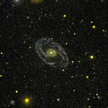NGC 2273 is a barred spiral galaxy located in the constellation Lynx. It is located at a distance of circa 95 million light years from Earth, which, given its apparent dimensions, means that NGC 2273 is about 100,000 light years across. It was discovered by Nils Dunér on September 15, 1867.[3]