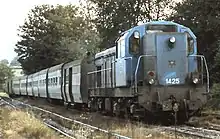 In the same year, 1975, they were sold to Spain where they served with the Ferrocarriles de Vía Estrecha (FEVE) in a blue livery and with the numbers 1421–1425 on the railway line between Gijón and Lagreo/Laviana.[4][3]  After this railway was converted to narrow gauge with a gauge of 1000 mm in 1982, the 1421–1425 were taken out of service and scrapped.[4][3]