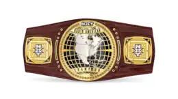 The championship belt was unveiled by WWE executive and NXT head Triple H on April 3, 2018. Featuring three gold plates on a thick brown leather strap, the rounded center plate features a globe that only shows the continent of North America. The banner above the globe reads "North American" and above the banner is the NXT logo. The lower banner at the bottom of the globe reads "Champion". In what has become a prominent feature of WWE's championship belts, the two side plates feature a removable center section which can be customized with the champion's logos; the default side plates feature a vertical NXT logo on a globe. This was WWE's first secondary title to feature customizable side plates. It was the only NXT championship to feature the NXT logo for the default side plates until the introduction of the NXT Women's Tag Team Championship in 2021; the other NXT championships feature the WWE logo.[15]