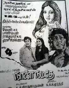 Naalai Namadhe (transl.Tomorrow Is Ours) is a 1975 Indian Tamil-language masala film directed by K. S. Sethumadhavan. The film stars M. G. Ramachandran, Latha, Chandramohan, Vennira Aadai Nirmala, and M. N. Nambiar. A remake of the 1973 Hindi film Yaadon Ki Baaraat, it revolves around three brothers being separated in their childhood due to the actions of a killer, and growing up to live separate lives. The film was released on 4 July 1975 and became a success.[1]
