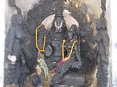 The temple has an elevated structure approached through a flight of 21 steps. The presiding deity of the temple is Vishnu in the form of Narayur Nambi and his consort Niladevi as Vanchulavalli Thaayaar (also called Neela Devi Nachiyar), both of whom are housed in the main sanctum. Unlike other Vishnu temples where Vishnu is given importance, in this temple Nachiyar (Thayar) is prominent. The sanctum also houses the images of Brahma, Pradyumna, Aniruddha, Sankarshana and Purushothaman (Vishnu) and a set of gods, who are depicted attending the wedding. The festive idols of Srinivasa (Vishnu), Sridevi (Lakshmi), Vanjulavalli (Niladevi) and Bhudevi are housed in the same shrine.[1] The temple is maintained and administered by the Hindu Religious and Endowment Board of the Government of Tamil Nadu.[3]