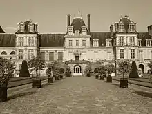 In the summer of 1921 the French Music School for Americans opened in Fontainebleau, with Boulanger listed on the programme as a professor of harmony.[34] Her close friend Isidor Philipp headed the piano departments of both the Paris Conservatory and the new Fontainebleau School and was an important draw for American students. She inaugurated the custom, which would continue for the rest of her life, of inviting the best students to her summer residence at Gargenville one weekend for lunch and dinner. Among the students attending the first year at Fontainebleau was Aaron Copland.[35]