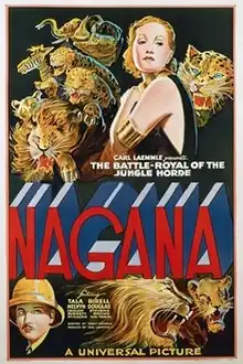 Nagana is a 1933 American pre-Code drama film directed by Ernst L. Frank and written by Don Ryan and Dale Van Every. The film stars Tala Birell, Melvyn Douglas, Miki Morita, Onslow Stevens, Everett Brown and Billy McClain. The film was released on February 1, 1933, by Universal Pictures.[1][2][3]