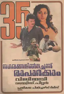 Nagarangalil Chennu Raparkam (transl.โ€‰Let's dwell in cities) is a 1989 Indian Malayalam-language black comedy film directed by Viji Thampi and written by Ranjith. The film stars Jayaram and Sreenivasan and is partially based on Ruthless People (1986).[1][2]