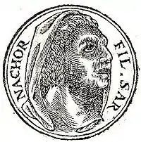 Nahor (Hebrew: נָחוֹרNāḥōr; Greek: ΝαχώρNakhṓr) is the son of Serug according to the Hebrew Bible in Genesis Chapter 11.[1] He is said to have lived to the age of 148 years old[2][3] and had a son, Terah, at the age of 29.[2][4] He was also the grandfather of Abraham, Nahor II and Haran.[5][6]