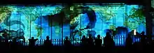 For two-dimensional works, she uses both oil paintings and watercolors. Her other inspirations are from the realm of memory, myth and desire. The rapid brush style evokes dreams and fantasies.[18] Malani's video and installation work allowed her to shift from strictly real space to a combination of real space and virtual space, moving away from strictly object-based work. Her video work often references divisions, gender, and cyborgs.[18] Malani roots her identity as female and as Indian, and her work might be understood as a way for her identity to confront the rest of the world.[19] She often references Greek and Hindu mythology. The characters of 'destroyed women' like Medea, Cassandra and Sita feature often in her narrative.[11] Her work can be broadly classified under two categories; experiments with visual media and the moving image like Utopia (1969-1976), Mother India (2005), In Search of Vanished Blood (2012); ephemeral and in-situ works such as City of Desires (1992), Medea as Mutant (1993/2014), The Tables have turned (2008). Though her work talks of violence and conflict, her main intent is collective catharsis.[20]