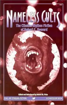 Nameless Cults: The Cthulhu Mythos Fiction of Robert E. Howard is a collection of Cthulhu Mythos short stories by Robert E. Howard. It was first published in the US in 2001 by Chaosium Press. All of these stories had been published previously, between 1929 and 1985, in Weird Tales, From Beyond the Dark Gateway, Strange Tales, Weirdbook, Fantasy Crosswinds, Coven, Fantasy Book, Dark Things, and The Fantasy Magazine.