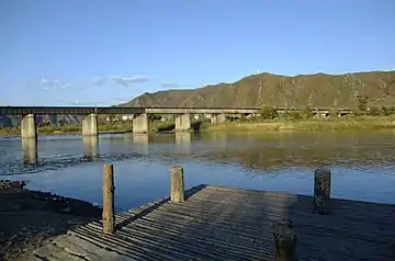 The Namyanggukkyŏng Line, or Namyang Border Line, is a 0.8 km (0.50 mi) long railway line of the Korean State Railway connecting Namyang on the Hambuk Line with Kukkyŏng at the DPRKChina border, continuing on to Tumen, China, 3.3 km (2.1 mi) from Namyang.[1] At Tumen it connects with China Railway's Changtu Railway (Changchun–Tumen; 长图铁路), Tujia Railway (Tumen–Jiamusi; 图佳铁路), and Tuhun Railway (Tumen–South Hunchun–Changlingzi and on to Russia; 图珲铁路). The line is electrified between Namyang and Kukkyong.