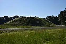 Nanih Waiya (alternately spelled Nunih Waya)[2] (Choctaw: slanting mound)[3] is an ancient platform mound in southern Winston County, Mississippi, constructed by indigenous people during the Middle Woodland period, about 300 to 600 CE. Since the 17th century, the Choctaw and Chickasaw have venerated Nanih Waiya mound and a nearby cave as their sacred origin location.