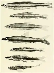 - ↑ Froese, Rainer and Pauly, Daniel, eds. (2013). Species of Nannostomus in FishBase. April 2013 version.