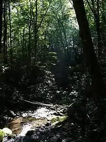 Several areas of old-growth forest have been identified in the Nantahala National Forest, totaling some 30,800 acres (125 km2).[8] The Joyce Kilmer-Slickrock Wilderness in particular contains nearly 6,000 acres (24 km2) of old-growth forest.