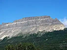Napi Rock (7,487 feet (2,282 m)) is located in the Lewis Range, Glacier National Park in the U.S. state of Montana.[3] Napi Rock is a pinnacle on the eastern end of Singleshot Mountain and is easily seen from Saint Mary, Montana. Napi Rock is named for Napioa also known as Nah-pee, a fictional creation myth figure of the Blookfoot who was believed to have created the earth and everything on it.[4]