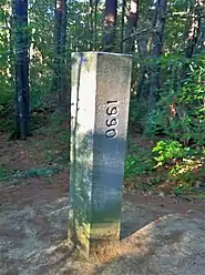Narragansett Trail Eastern Terminus - Connecticut - Rhode Island State Line Marker on Green Fall Road.