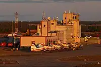 Naryan-Mar Airport (Russian: Аэропорт Нарьян-Мар) (IATA: NNM, ICAO: ULAM) is an airport in Russia located 3 km east of Naryan-Mar. It is a mixed civilian-military field, and is the only major facility airfield on the Barents Sea coast between Arkhangelsk and Novaya Zemlya. It served as a rear operations air base for Rogachevo air base on Novaya Zemlya. In 2017, 183,127 passengers traveled via this airport.