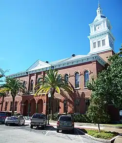 The Nassau County Courthouse, also known as the Old Nassau County Courthouse and the Historic Nassau County Courthouse, is a historic two-story red brick courthouse building located at 416 Centre Street in Fernandina Beach, Nassau County, Florida. Designed in the Classical Revival style, it was built in 1891 and features cast-iron Corinthian columns and a massive bell tower and steeple. Meneely and Co. of West Troy, New York, cast the bell for the tower, which was used as a fire alarm for many years.[1][2][3]