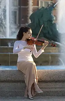 Nastasja Vojinović at the Logan Square of Philadelphia in 2018 with her Carl Becker Violin made in 1926.
