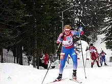 Natalia Vladimirovna Guseva née Sorokina (Russian: Ната́лья Влади́мировна Гу́сева; born 12 September 1982 in Tikhvin, Russian SFSR) is a Russian female biathlete who lives in Saint Petersburg. Besides her biathlon career, she is a professional soldier, and as such represents the Russian Army sports club.