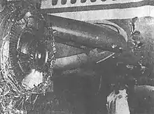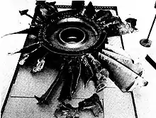 N60NA's No.3 engine after the failure, showing the remains of the failed fan assembly