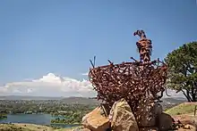On Dairy Farmers Hill is a found objects artwork depicting an eagle on a nest.