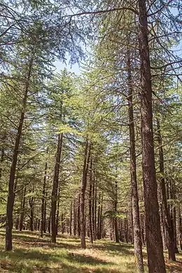 A forest of Turkish Pine Pinus brutia, a species native to the Gallipoli Peninsula in Turkey, has been planted to commemorate Australian service personnel killed in all conflicts.[6] In addition, a number of ceremonial Aleppo Pines (Pinus halepensis) have been planted on the summit of Dairy Farmers Hill, propagated from seed of the Lone Pine tree planted at the Australian War Memorial.[7] These complement a number of mature specimens of this species already existing on the hill.[8]
