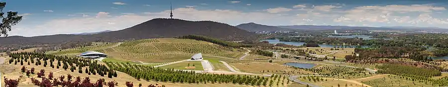 The National Arboretum Canberra is a 250-hectare (620-acre) arboretum in Canberra, the national capital of Australia, created after the area was burned out as a result of the Christmas 2001[1] and 2003 Canberra bushfires:[2] The Himalayan Cedar forest lost about one third of its trees, and the commercial Radiata Pine plantation was burned out, allowing the arboretum to be created.