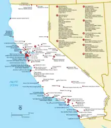 The table below lists all 148 sites, along with added detail and description. The sites are distributed across 36 of California's 58 counties.[2]