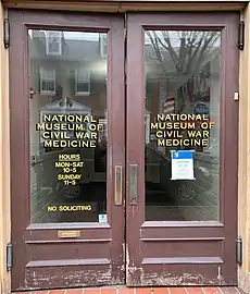 In 2006, the museum, in cooperation with the U.S. National Park Service, began operating the Pry House Field Hospital Museum at the Antietam National Battlefield.[7] In 2014, the museum opened the Clara Barton Missing Soldiers Office[8] at 347 Seventh Street, NW in Washington, D.C.[9]