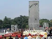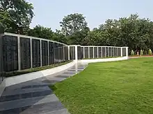The National Police Memorial in India commemorates the 34,844 police personnel from all of the central and state police forces in India who have died in the line of duty since the nation's Independence in 1947.[1] Located in New Delhi's Chanakyapuri area, the 6.12 acres (2.48 hectares) memorial consists of a 30-foot (9.1-metre) tall and 238-tonne (234-long-ton; 262-short-ton) heavy black granite central sculpture, a museum and a 'Wall of Valour' bearing the names of all 34,844 police personnel who have died in the line of duty.[2][3][4] The underground museum is the first police museum of its kind in India, and showcases over 2000 years of policing in the region, since the time of Kautilya's system of law and order in 310 BCE.[5]