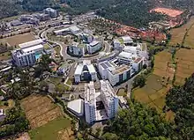 The NSBM Green University declared open in 2016, is a purpose-built building complex spread over an area of 26 acres in Homagama.[66] The building complex mainly comprises the Main Auditorium, Program Office, Student Centre, Library, Administration Building, and the buildings housing the faculties. These buildings are connected with a road network giving easy access. The facilities provided in this building complex include lecture halls, laboratories, library, audio-visual facility, IT facility, medical center, bookshop, cafeterias, restaurant, mini supermarket, salon, gift shop, banking facility, study areas, and open-air theatre.[67]