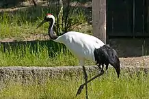 The red-crowned crane or Manchurian crane (Grus japonensis) is a large East Asian crane and among the rarest cranes in the world. It is found in Siberia (eastern Russia), northeastern China, and the Mongol Daguur Strictly Protected Area in northeastern Mongolia. |