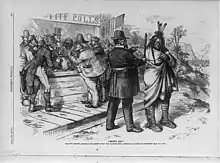 It was not until 1924, when Native Americans were given citizenship, that they were able to vote. However, even as citizens some states still found ways to deny them the right to vote. One example is when the Arizona Supreme Court denied citizenship and suffrage to Native Americans living on reservations, arguing that they were under federal not state jurisdiction.[4] Other tactics states used included the argument that Native Americans living on reservations should not have an influence in making state and local laws since they are not subject to their laws. In New Mexico, before 1948, Natives that did not have to pay state taxes were prevented from voting. Moreover, up until 1962 New Mexico continued suppressing indigenous voting rights on the basis that Native Americans living on reservations were not residents of the state.[4] The same argument was used in Utah in 1956 to deny Indians the right to vote. The Utah Supreme Court ruled that Indians were incapable of being good citizens because of their illiteracy and separation from American society. Other states refused to recognize Indians as citizens unless they assimilated and abandoned all tribal connections.[4]