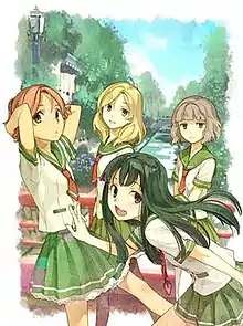 Cover of first BD volume featuring the main characters (from left to right): Natsumi Aizawa, Saki Mizukoshi, Yuka Hanaki and Rinko Tamaki