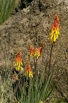 Red-hot poker is one of the flowers found in timberline forest and lower heathland zones.