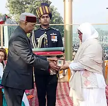 On 26 January 2019 on Republic Day, President Ram Nath Kovind posthumously awarded the Ashoka Chakra to Nazir Ahmad Wani. The award was accepted by his wife Mahajabeen at an official ceremony during the Delhi Republic Day parade.[20] He was the first recipient of the Ashok Chakra award from the Kashmir region of the Indian state of Jammu and Kashmir.[6]
