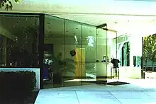 ![]() Top: Logo designed by Paul Rand Bottom: Original Redwood City headquarters at 900 Chesapeake Drive (pictured c. 2022) | |