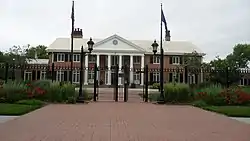 The Nebraska Governor's Mansion sits on an entire city block, emphasizing the importance of the office and the building.[2] The grounds are landscaped to include large lawns, gardens, walking paths, and a fountain surrounded by an imposing wrought-iron fence which was added in the late 1990s.[2]