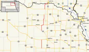 - 1 2 3 4 5 6 7 8 "Nebraska Highway Reference Log Book" (PDF). Nebraska Department of Roads. 2015. pp. 267–268. Retrieved January 7, 2017.