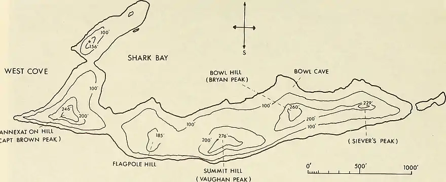 - Summit Hill (or Vaughn Peak), 84 meters (277 ft) high, the island's highest point