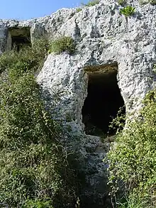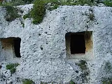 The Necropolis of Pantalica is a collection of cemeteries with rock-cut chamber tombs in southeast Sicily, Italy. Dating from the 13th to the 7th centuries BC, there was thought to be over 5,000 tombs, although the most recent estimate suggests a figure of just under 4,000. They extend around the flanks of a large promontory located at the junction of the Anapo river with its tributary, the Calcinara, about 23 km (14 mi) northwest of Syracuse. Together with the city of Syracuse, Pantalica was listed as a UNESCO World Heritage Site in 2005.