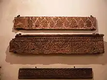 The museum's collection of historic woodwork objects originates from across Morocco. It includes doors, musical instruments, and religious objects. Some were crafted in the more Andalusi-influenced style of Fez and others exemplify traditional Amazigh styles. One group of objects comprises wooden boards that were carved by students learning to recite the Qur'an.[4] A large metal scale on display in the courtyard is the original scale that was once used to measure the weight of traded goods.[12][13]