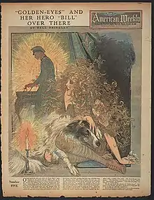 Her earliest series, Golden Eyes and Her Hero, Bill, is a comic chronicling the adventures of a girl known as Golden Eyes during World War I.[10] It ran from March 1918 through February 1919 and featured full page illustrations in color. The series was renamed "Golden Eyes" and Her Hero "Bill" Over There, after a few episodes (as the narrative had shifted to France) and would keep that new name for the remaining 15 installments.[10]